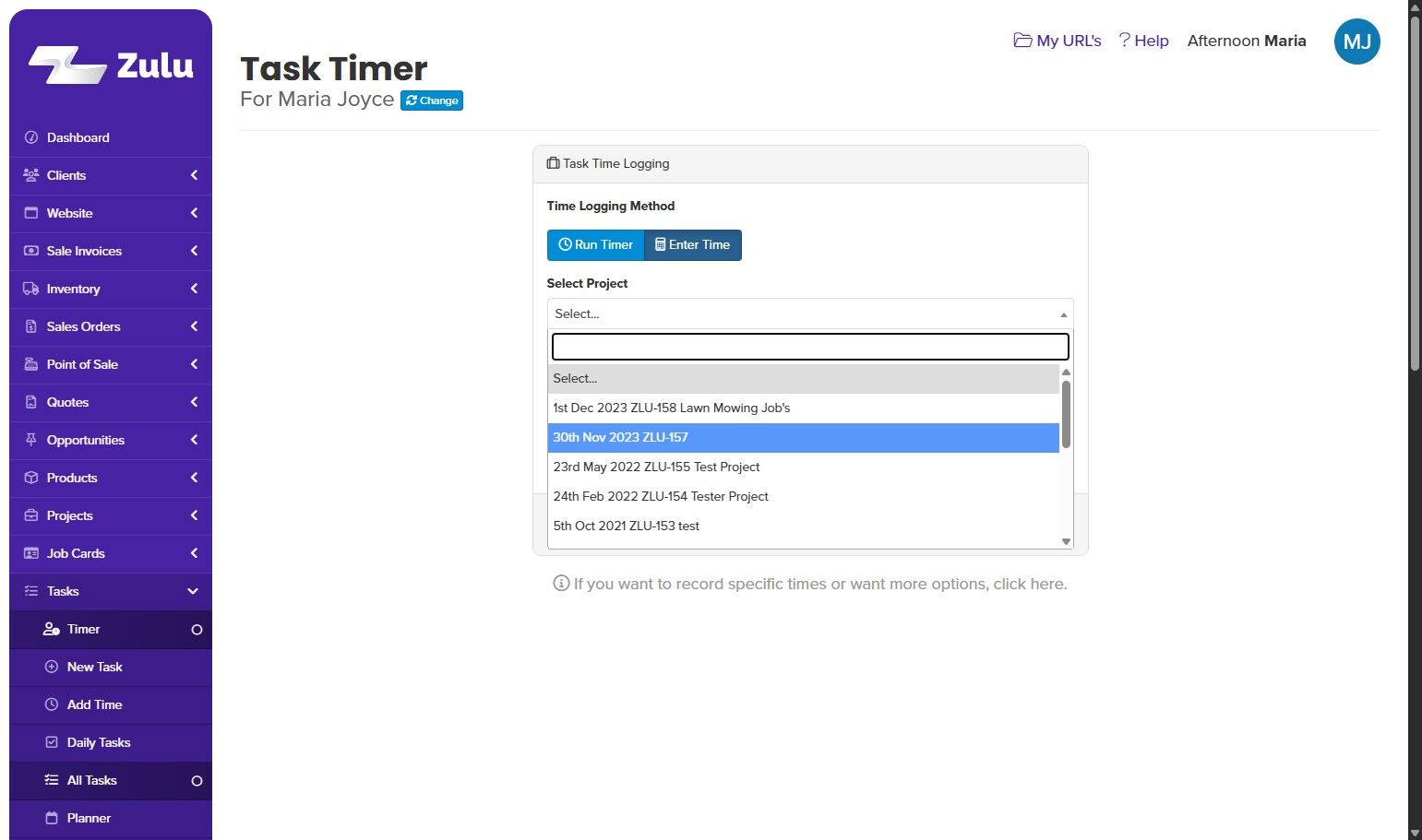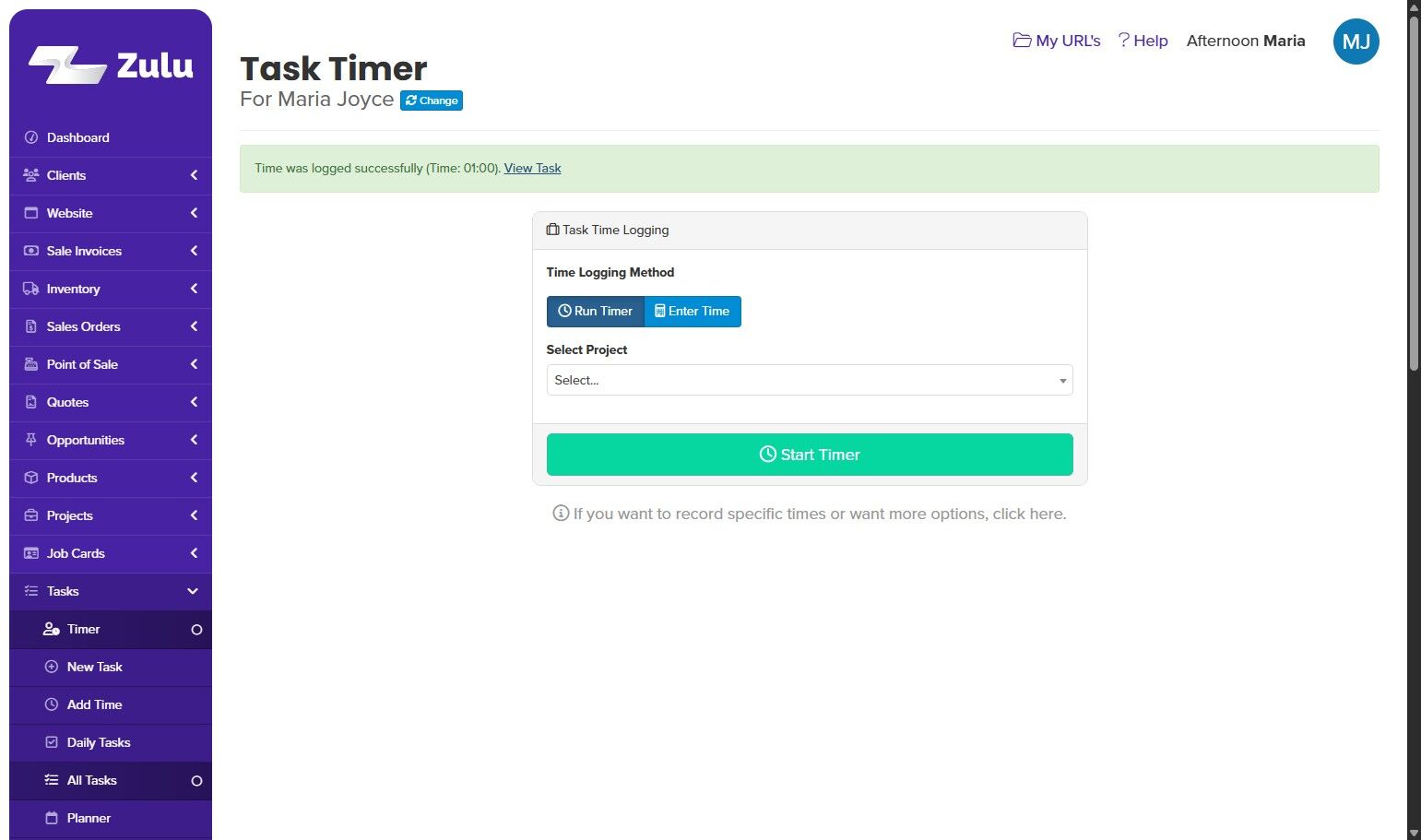 2. Go to the Tasks section in Zulu Dashboard and select Timer.